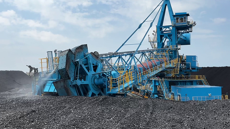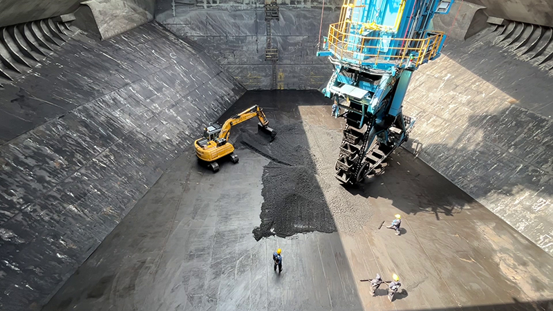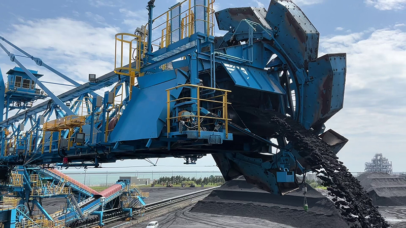 発電所からの要請に応じて、スタックリクレーマ・リクレーマで石炭をベルトコンベヤに載せて送り届けます。
